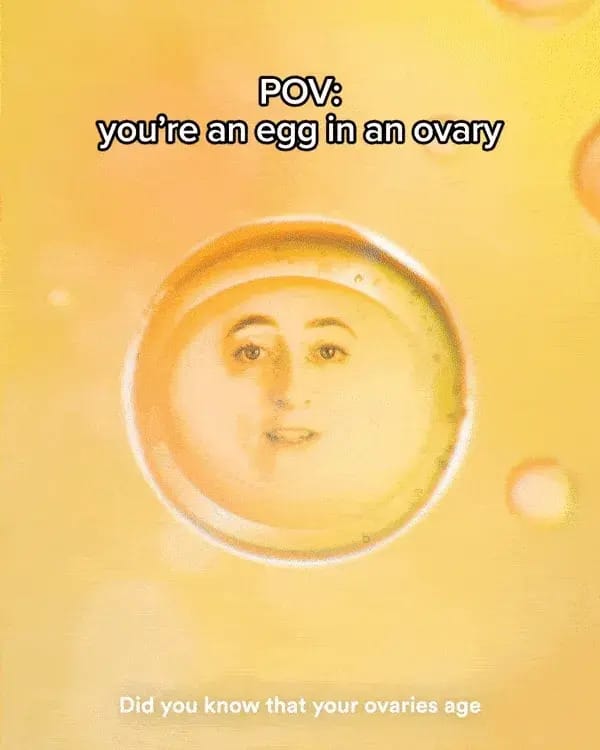 No creo que haya una sola persona leyendo esto que no admita que, si viera esto en su feed, se detendría a mirarlo. Es pura genialidad. Creo que no necesito explicarte por qué funcionaría, porque es bastante obvio. Es un huevo parlante en un ovario.