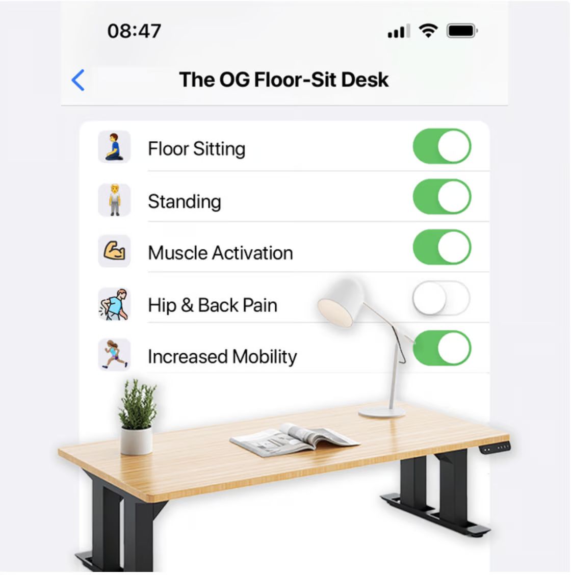 También me gusta mucho el uso del dolor de cadera y espalda sin activar, para mostrar el problema que su producto resuelve.