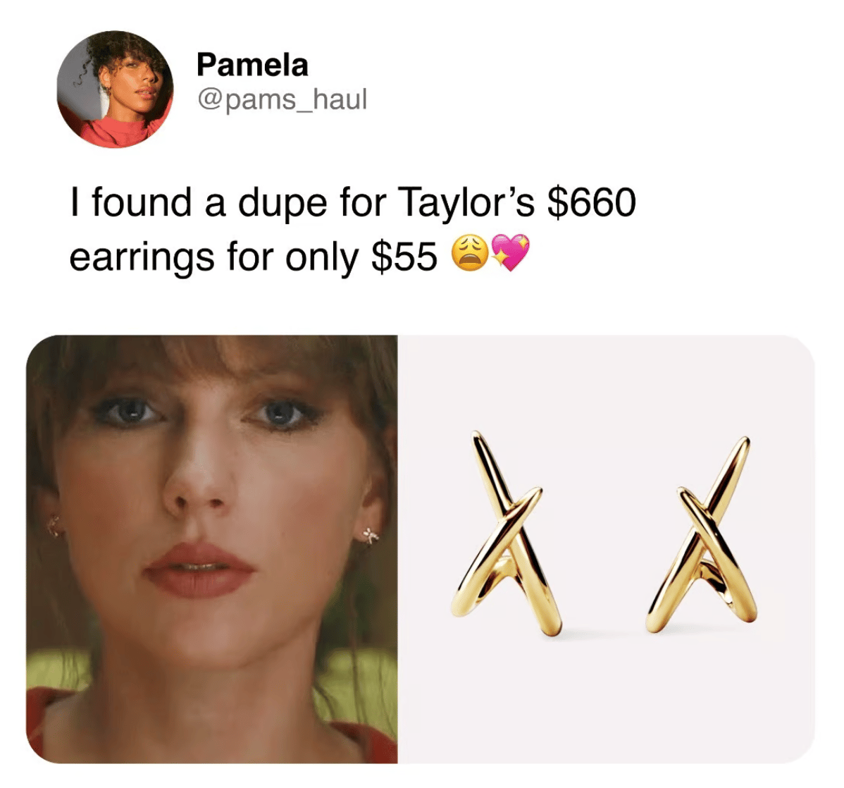 Imagen simple, foto del producto y mostrando cómo el producto se parece a los de Taylor. Este creativo podría despegar aún más si se convirtiera en un carrusel y se respaldara con tiendas de TikTok.