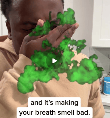 En este caso, el anuncio va enfocado en el problema de tener la lengua blanca, y va dirigido a una audiencia joven (que se identifica por la edad de los creadores que aparecen en el vídeo).